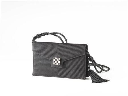 Fendi Pochette;Tessuto nero con nervature trasversali a mano, fermaglio...