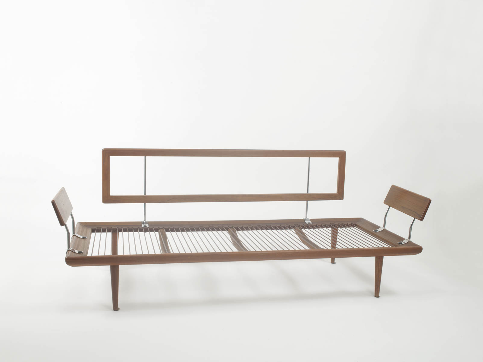 Arne Vodder Divano, anni ‘60;Struttura in legno teak ed acciaio con braccioli, 79 x 191 x 76 cm,