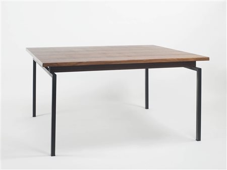 Italienische Manufaktur/Manifattura italiana Tavolo, anni ‘80;Struttura in legno di noce e ferro, 75 x 120 x 140 cm