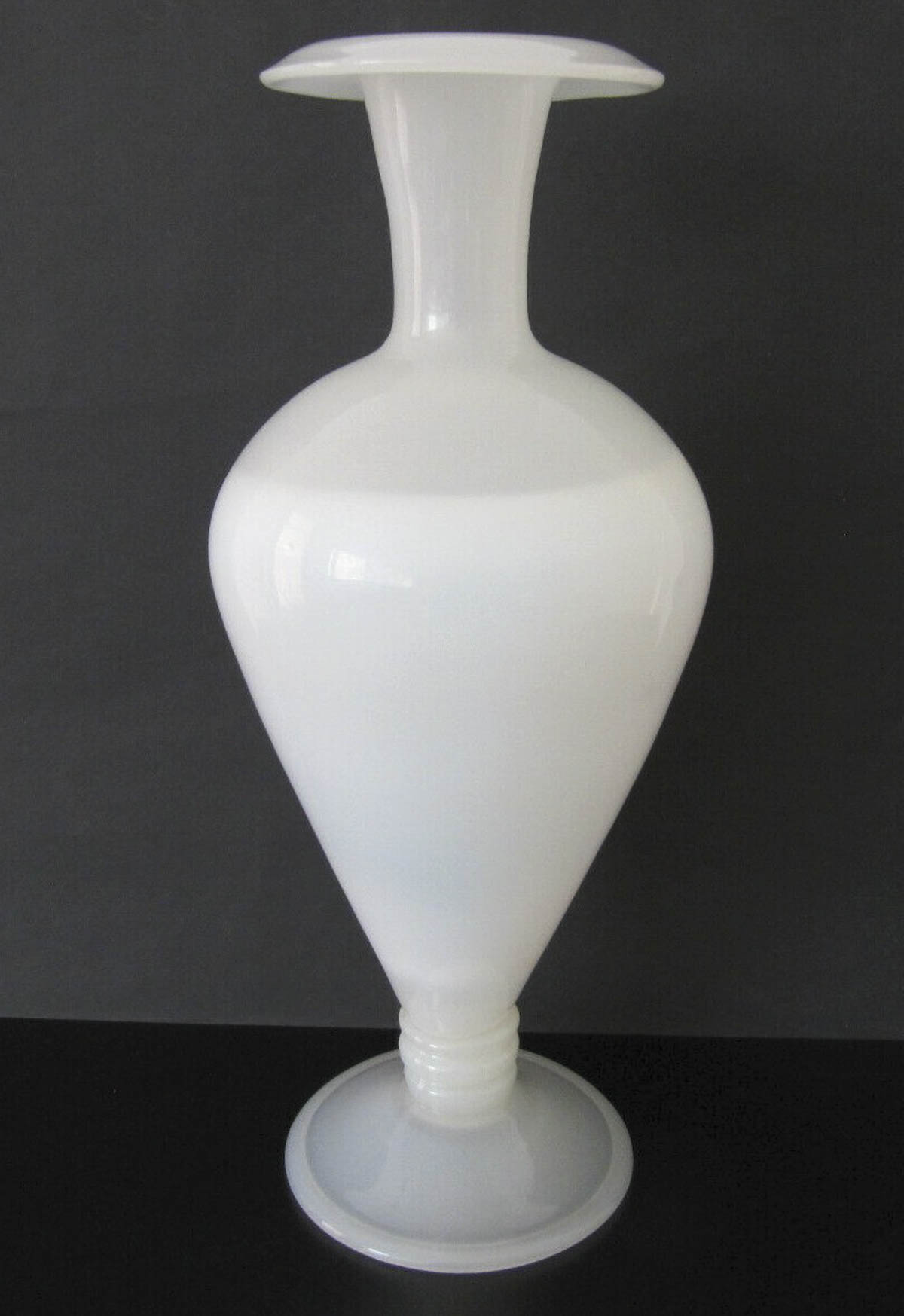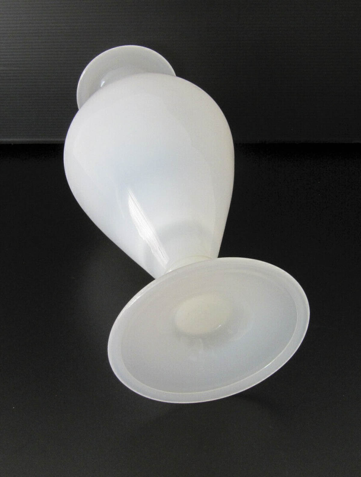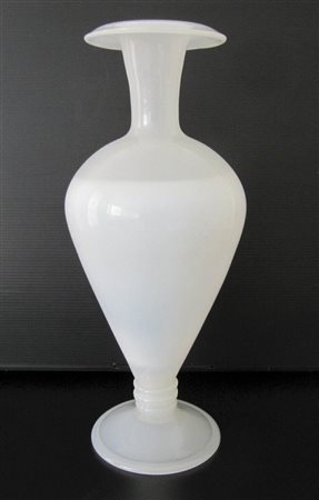 Vittorio Zecchin (zugeschrieben/attribuito) Raro vaso, 1920 ca.;Raro vaso in vetro opalino su piede, Anello applicato a caldo in basso, corpo ovale e bocca svasata, h. 34,5 x 14 cm, probabile manifattura muranese MVM Cappellin, in ottimo stato