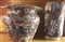Vetreria Francesco Ferro e figlio Set di due rari vasi, fine XIX secolo;(uno su piede) in vetro con decoro policromo “corinto”, h 14 e 12 cm, il vaso su