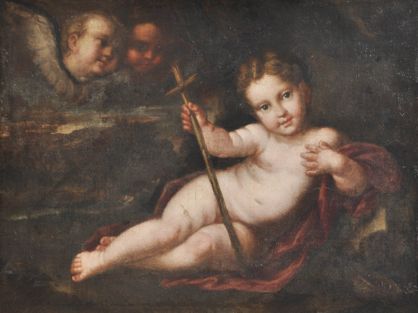 Maler der 2. Hälfte des 17. Jh./Pittore della seconda metà del XVII secolo Gesù bambino con angeli;Olio su tela, 74 x 100 cm, restaurato e rintelato, in cornice