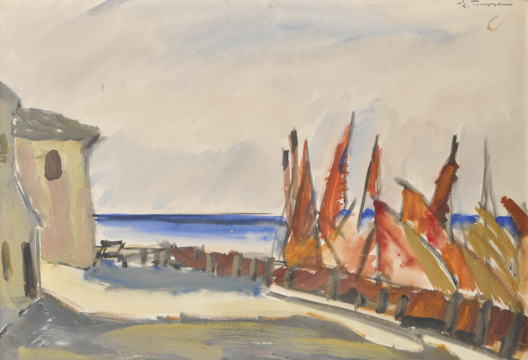 Erich Torggler (Kufstein 1899 – Innsbruck 1938) Barche colorate a vela;Tempera su carta, 51 x 74,5 cm, in cornice