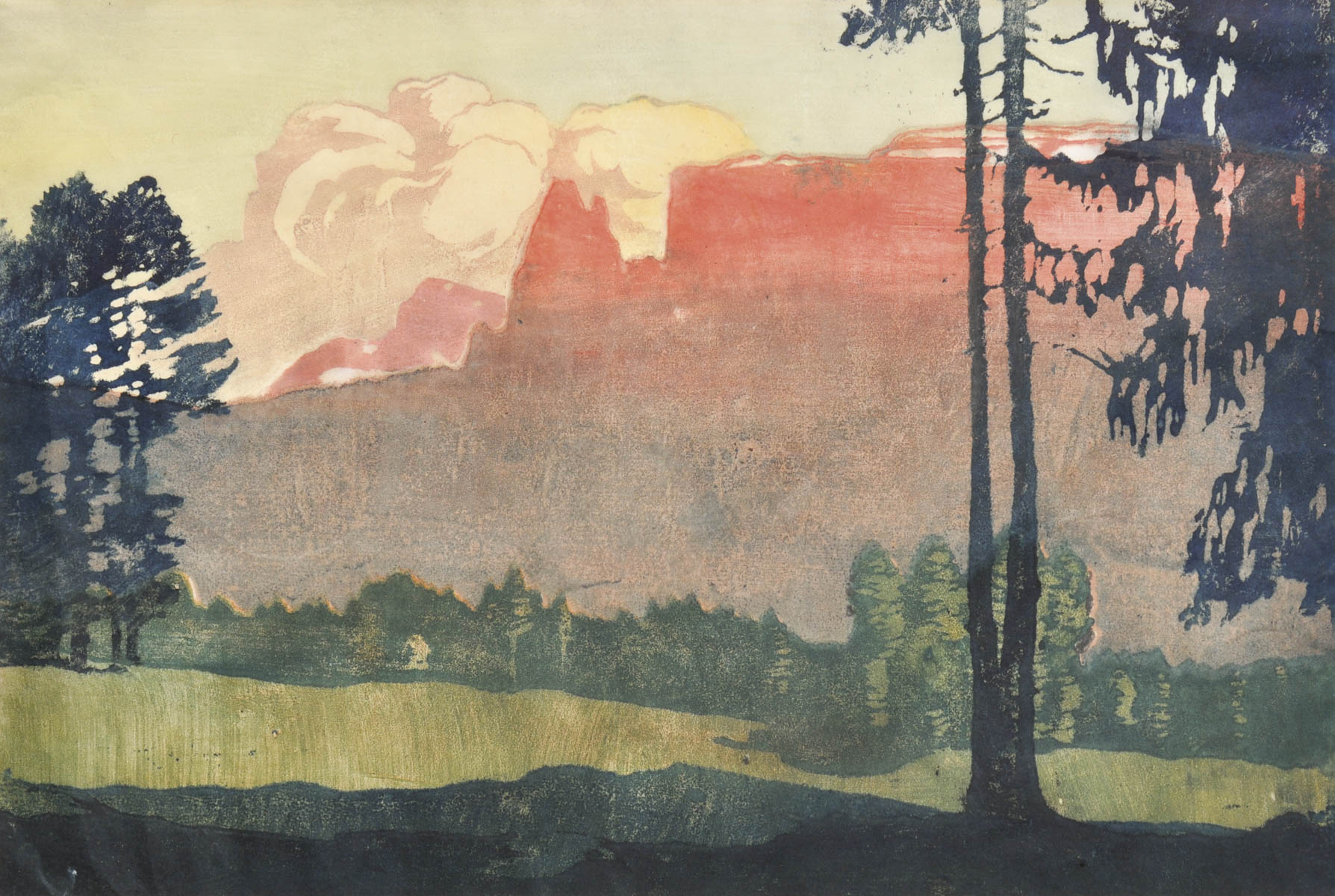 Max Sparer Sciliar nel rosso di sera;Xilografia a colori, 32,5 x 49 cm, in...