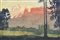 Max Sparer Sciliar nel rosso di sera;Xilografia a colori, 32,5 x 49 cm, in cornice