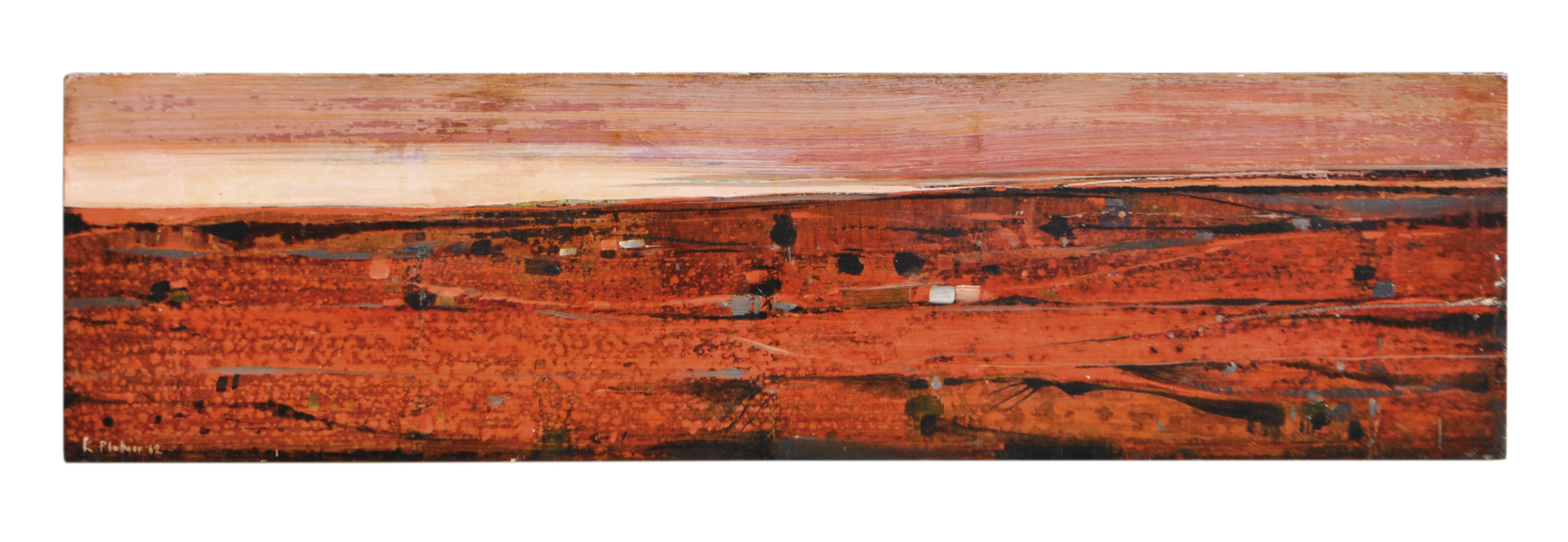 Karl Plattner (Mals/Malles 1919 – Mailand/Milano 1986 Paesaggio rosso, 1962;Olio su tavola, 21,5 x 83,5 cm, in cornice