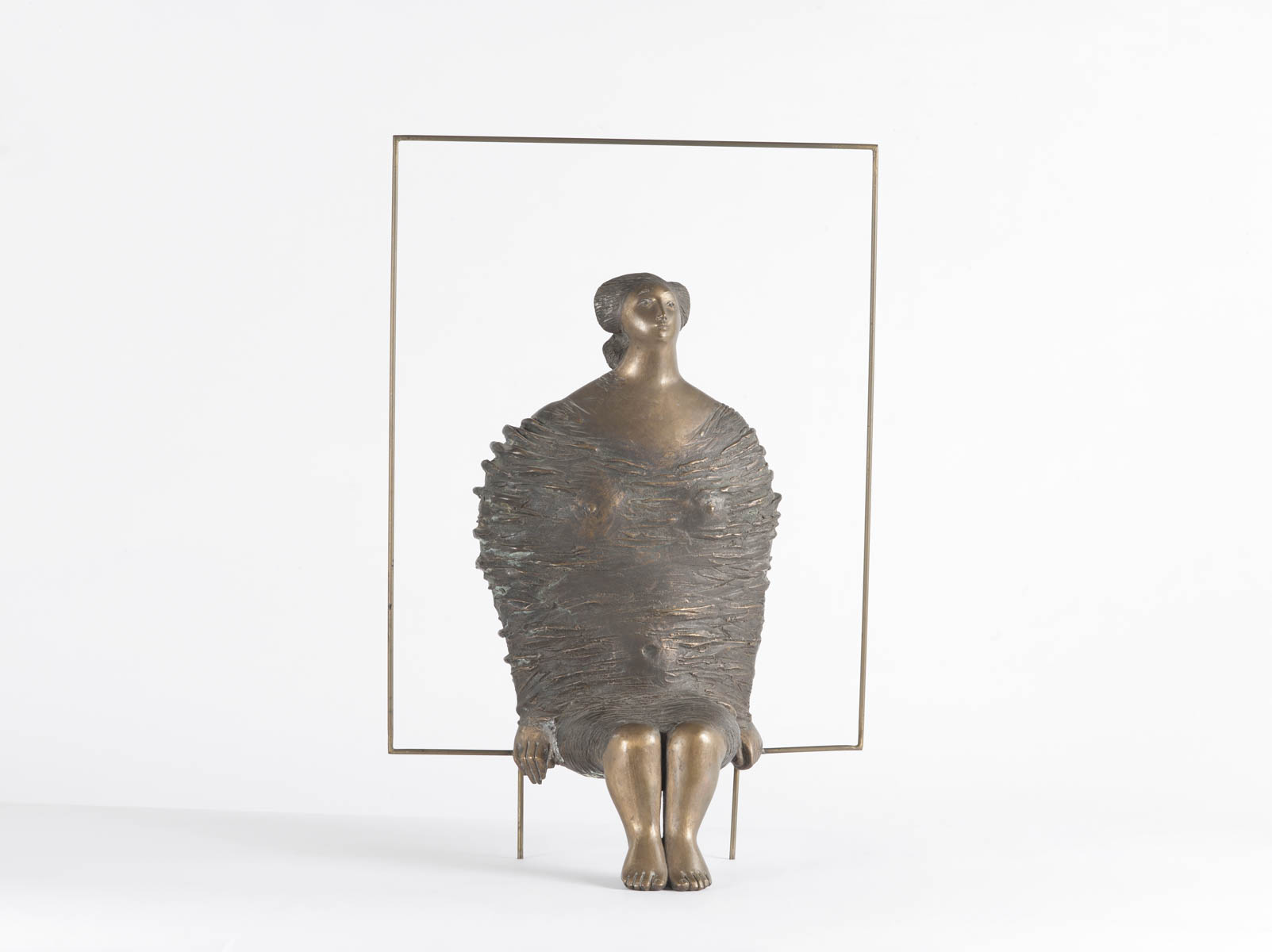 Guido Anton Muss (Brixen/Bressanone 1941 – Bozen/Bolzano 2003) Donna seduta;Bronzo, 62 x 42 cm, statua 32 x 27 cm