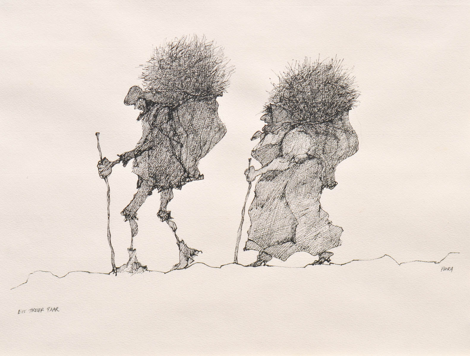 Paul Flora (Glurns/Glorenza 1922 – Innsbruck 2009) Una coppia tirolese;China, 22,7 x 29,7 cm (entro il passepartout)