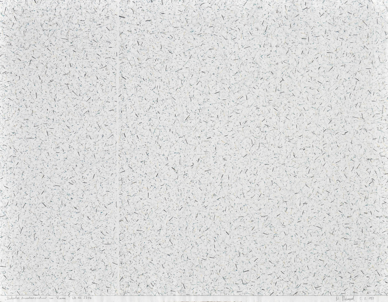 Norbert Pümpel (* Innsbruck 1956) “Diskreter Ausnahmezustand im Raum“, 1981;Tecnica mista su carta, 48 x 62 cm