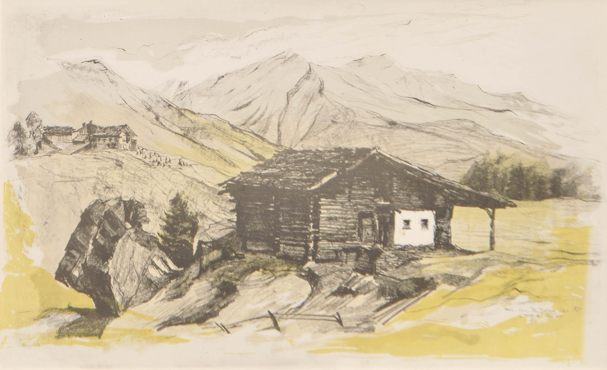 Rudolf Bellenzier Paesaggio di montagna in Alto Adige, 1975;Litografia a colori, 31 x 51 cm, in cornice