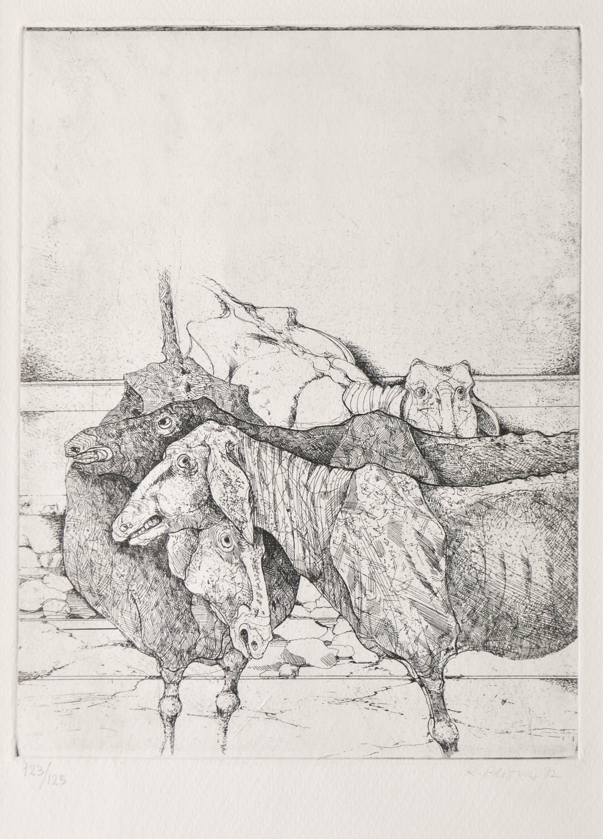 Karl Plattner (Mals/Malles 1919 – Mailand/Milano 1986) Pecore, 1972;Acquaforte, 32,2 x 24,6 cm (lastra), in cornice