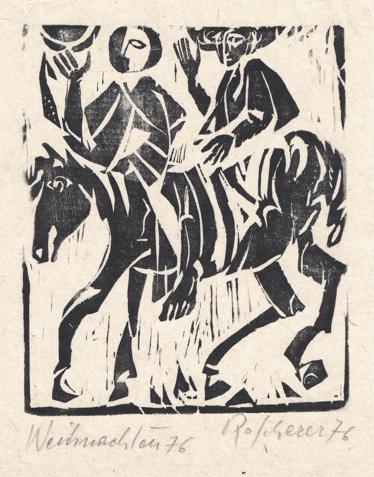 Robert Scherer (* Kortsch/Corces 1928) Biglietto natalizio 1976;Xilografia,...