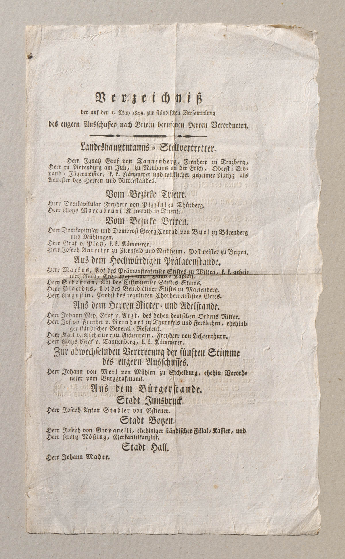 - Circolare “Verzeichnis der auf den 1. May 1809 ...;zu ständischen Versammlung des engern Ausschusses nach