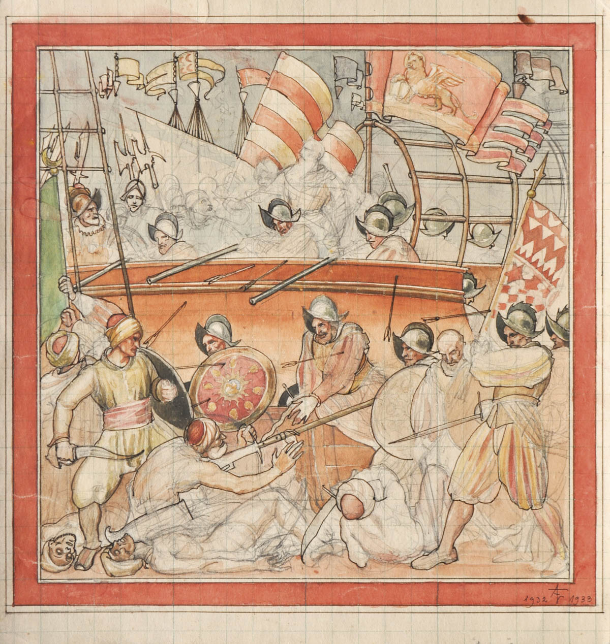 Lotto 446 | Anton Sebastian Fasal Battaglia contri i Turchi, 1932/33;China, acquerello,...