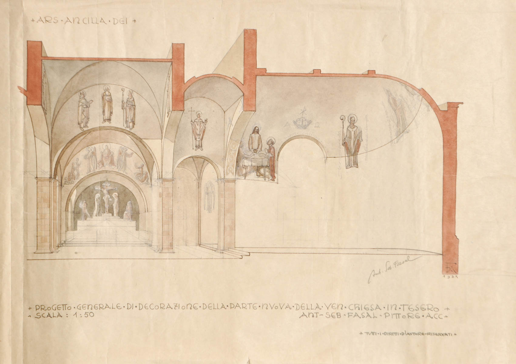 Anton Sebastian Fasal 4 bozzetti per la decorazione murale della chiesa a Tesero, 1937/38;