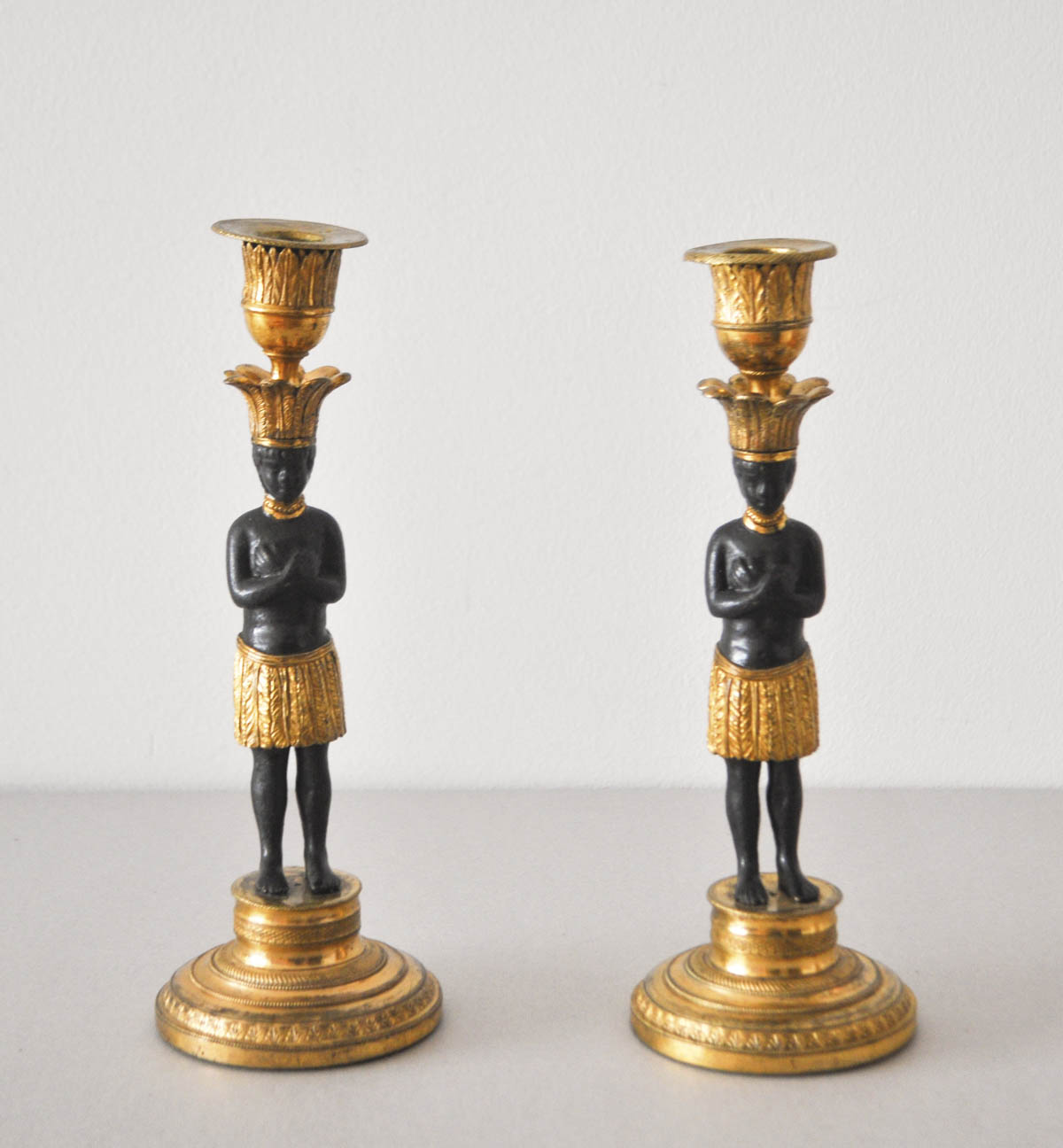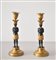 - Due candelieri, XIX sec.;Bronzo, dorato, H 24 cm