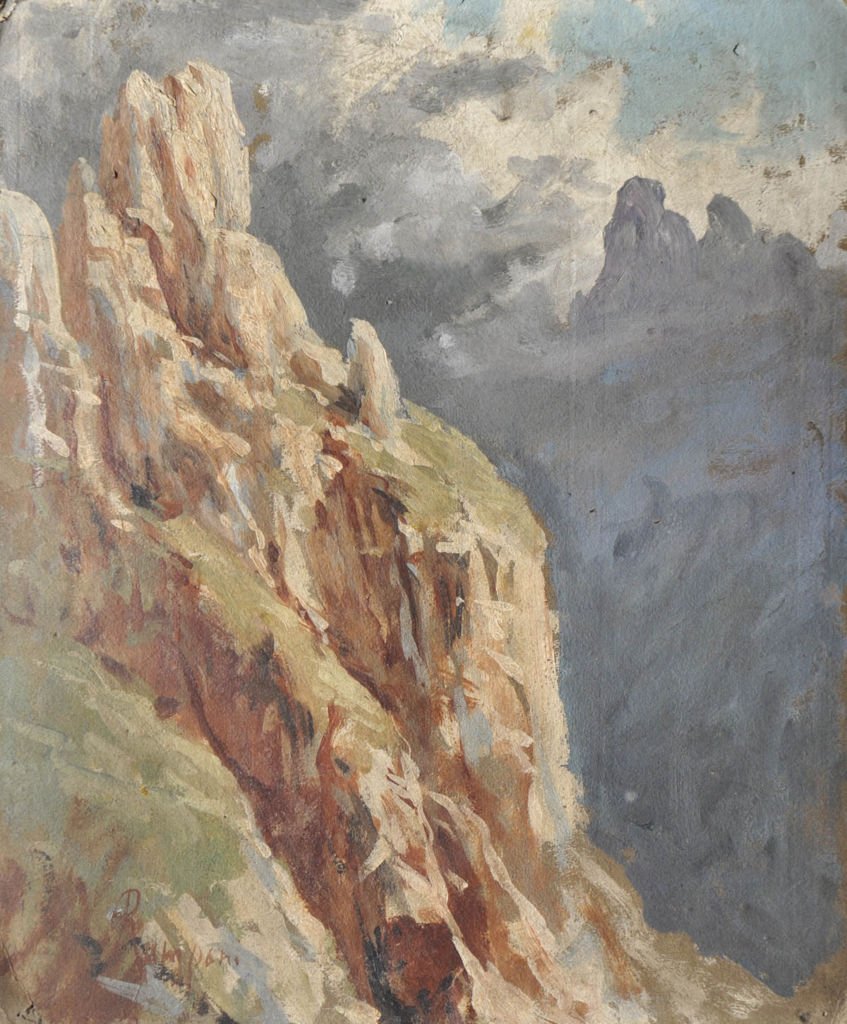 Ferdinando Ramponi (Les Abrets 1880 – 1916) Cime Alte;Olio su cartone, 31 x 26 cm