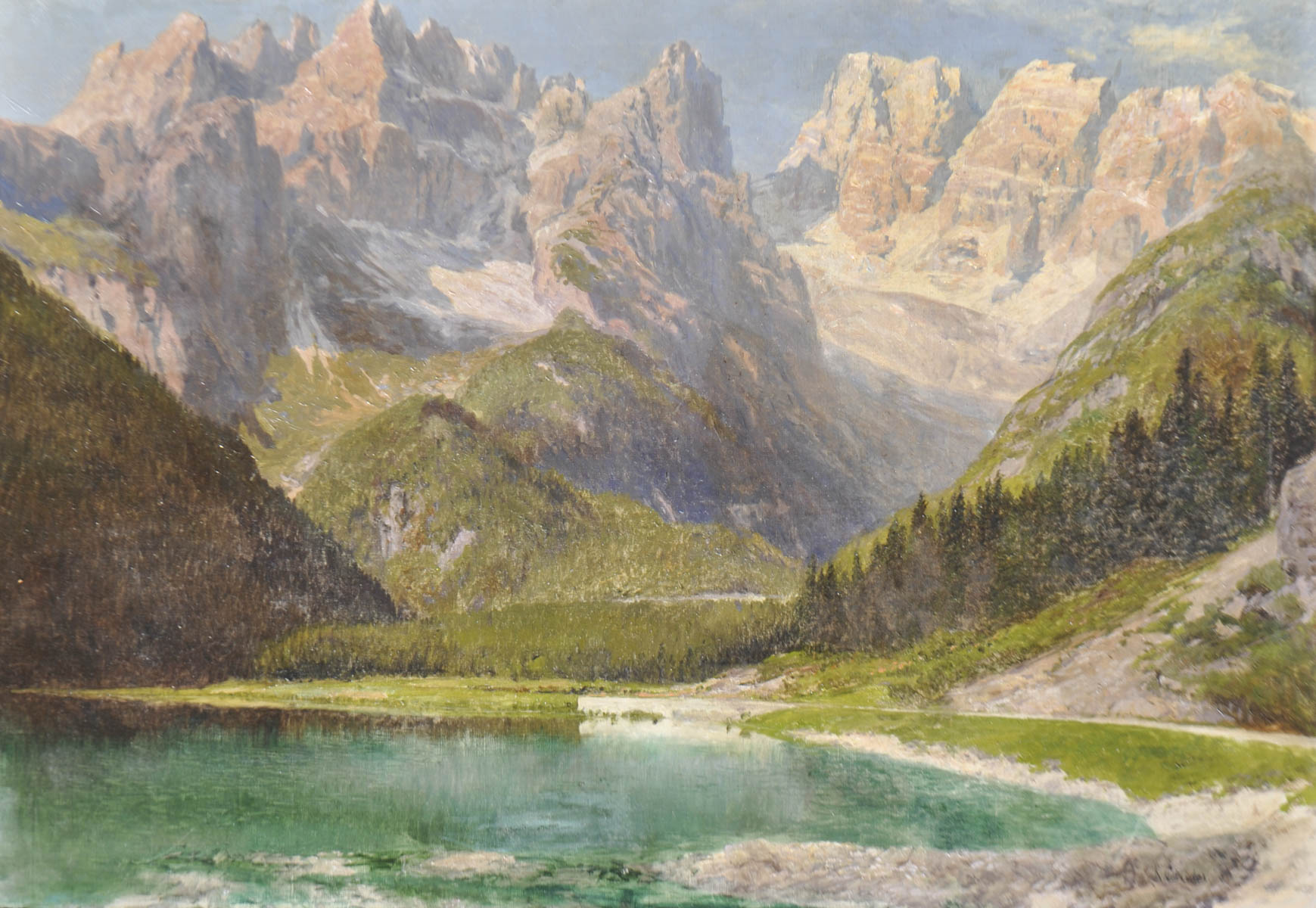 Konrad Petrides (Wien/Vienna 1864 – 1944) Lago di Landro nelle Dolomiti;Öl...