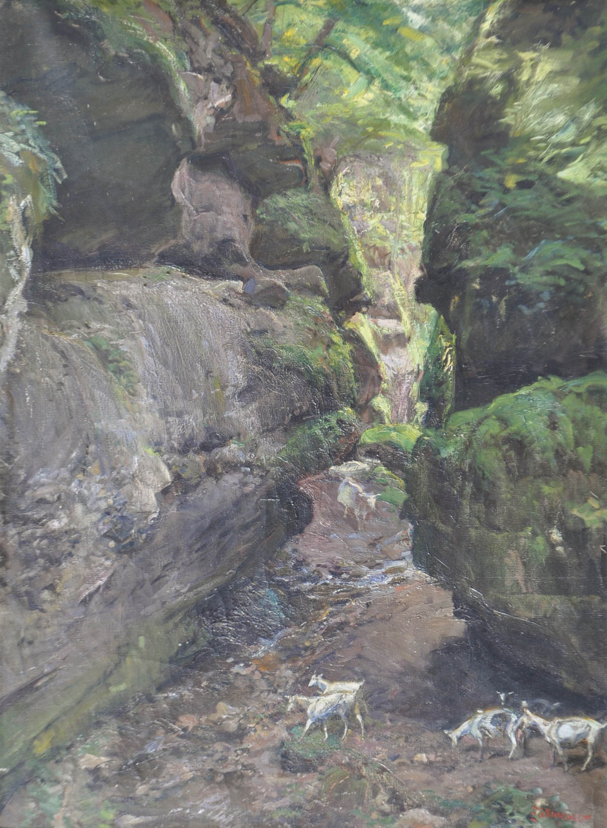 Ernst Liebenauer (Wien/Vienna 1884 – 1970) Gola con gregge caprino;Olio su...