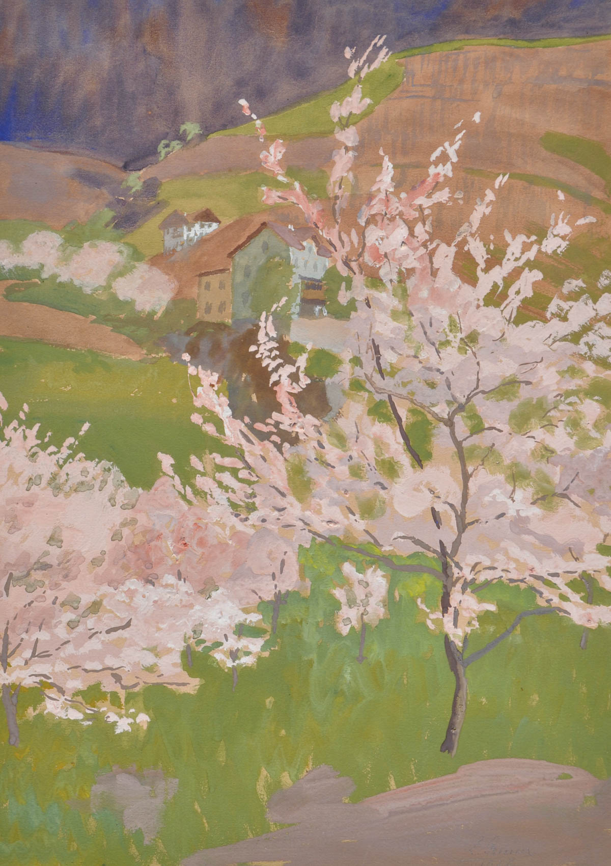 Lila Gruner Fioritura dei meli a Merano, 1928;Guazzo, 43 x 31 cm
