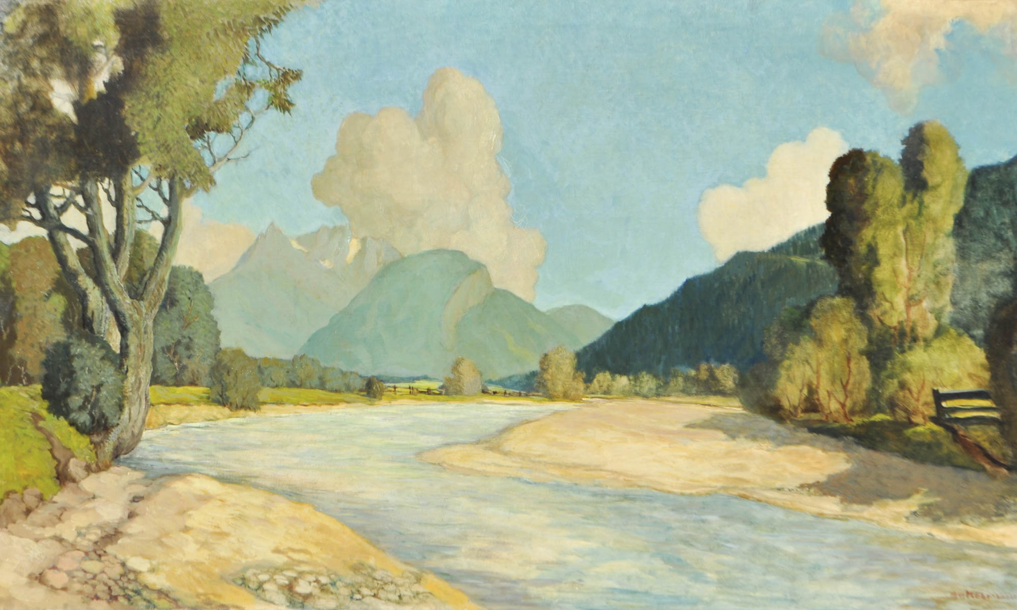 Hans Ebenbichler (Kramsach 1889 – Schwaz 1951) Valle inferiore dell‘Inn;Olio su tela, 64 x 108 cm, in cornice