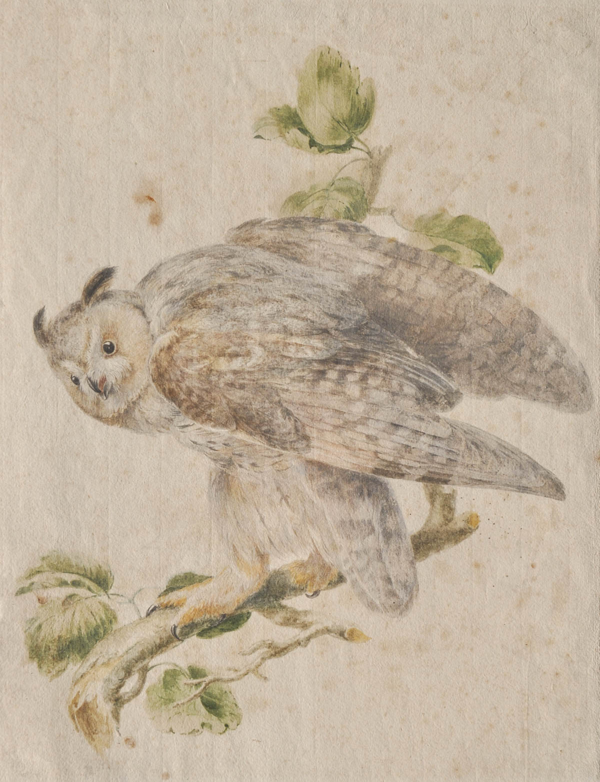 Maler des frühen 19. Jh./Pittore del primo Ottocento Gufo;Acquerello, 50 x 38,6 cm, leggere macchie