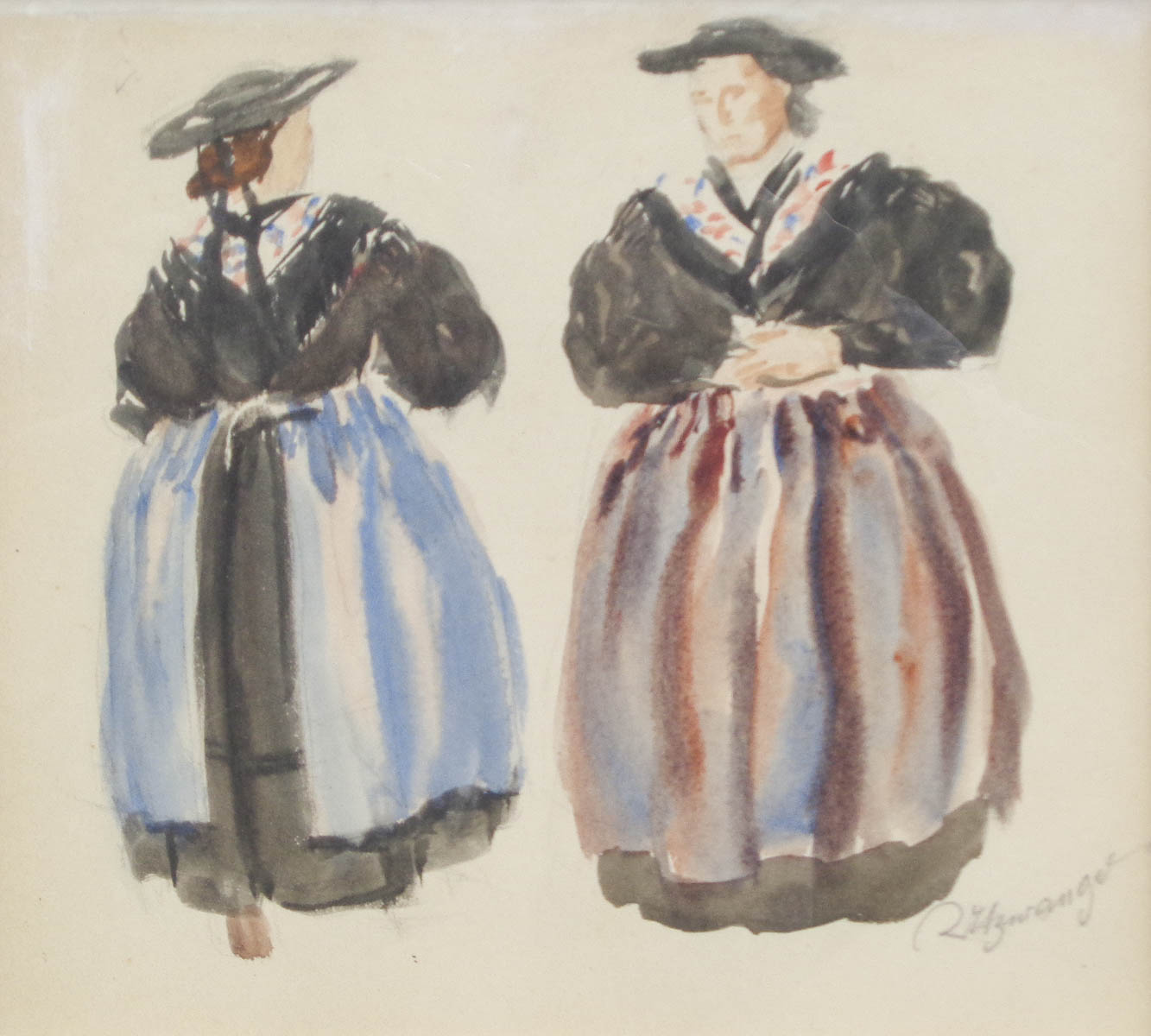 Hugo Atzwanger (Feldkirch 1883 – Bozen/Bolzano 1960) Coppia di contadine;Acquerello su carta, 20,5 x 22, 5 cm