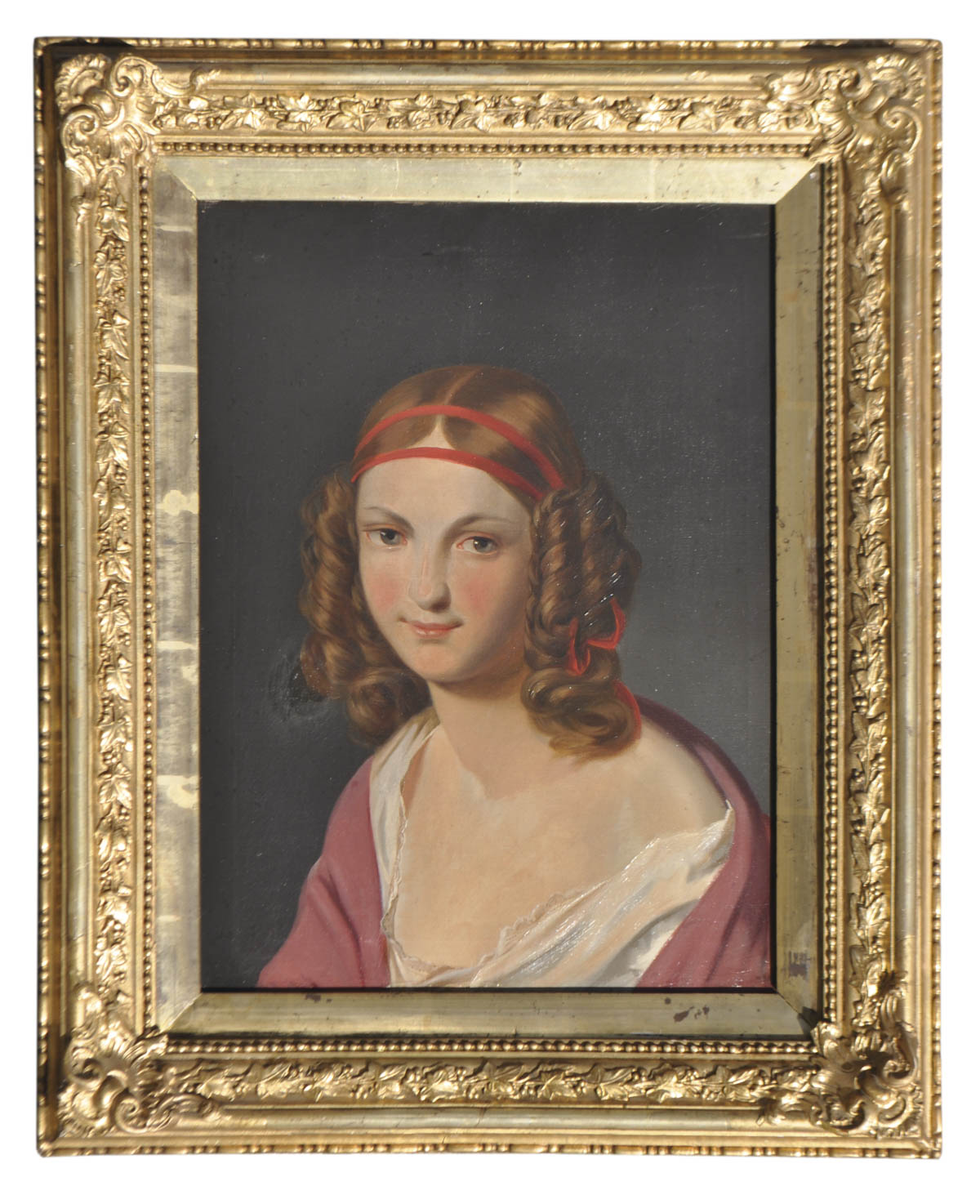 Österreichischer Maler des 19. Jh./Pittore austriaco del XIX sec. Ritratto di una ragazza;Olio su tela, 51 x 37 cm, restaurato, in cornice