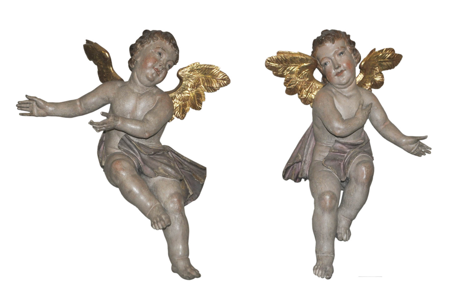 Lotto 555 | - Coppia di angeli barocchi, XVIII sec.;Legno dipinto, altezza 64 cm...