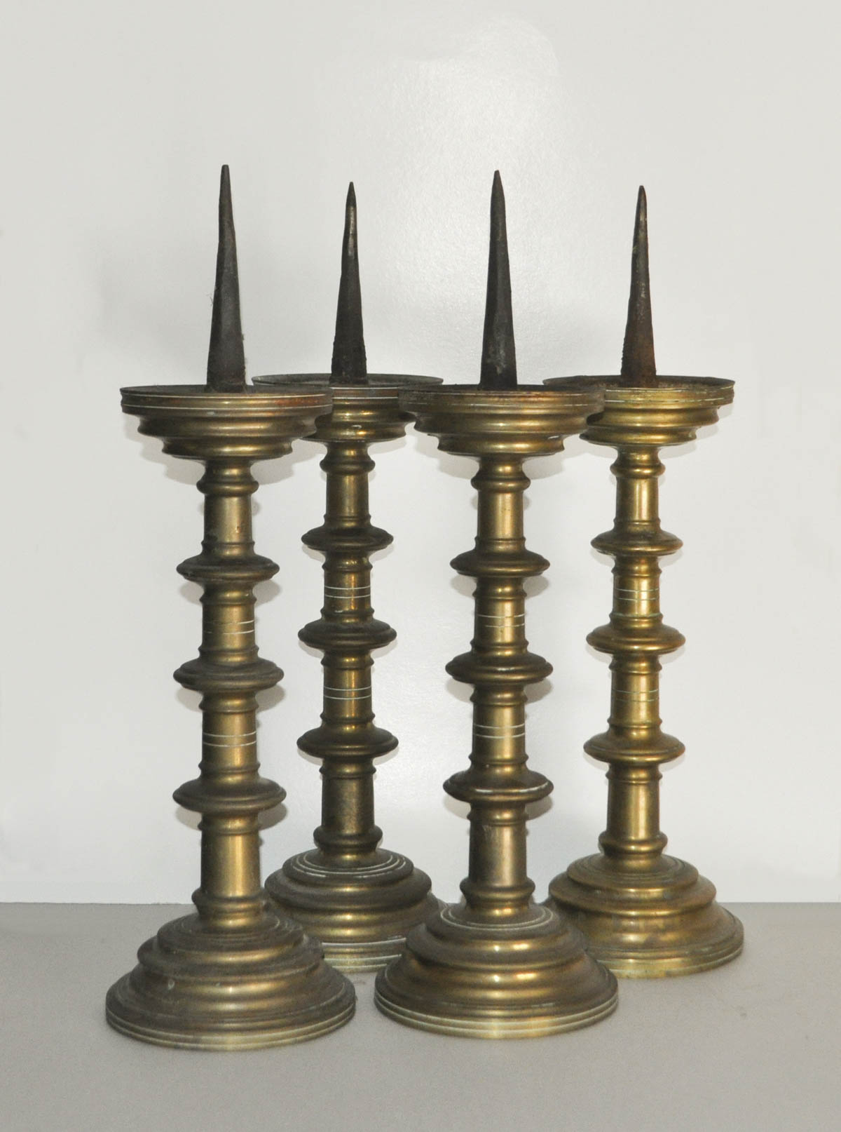 Lotto 575 | - 4 candelieri, XVII sec.;Ottone, altezza 52 cm ca. con spina Esaminato da...