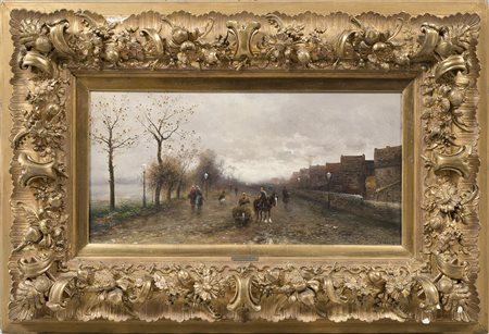 Barbarini Emil 1855-1933 Viale animato;olio su tela 32 x 63,
