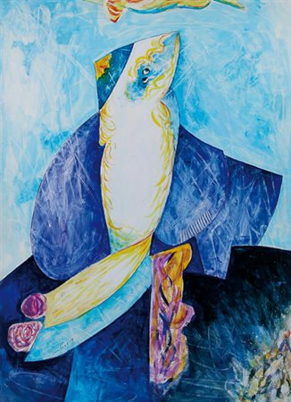 GIANNI DOVA Roma 08/01/1925 - Pisa 1991 Senza titolo tempera su carta intelata cm. 76x55, firma in basso a destra, opera registrata al numero G339 presso l'Archivio Gianni Dova per il Catalogo Generale come da dichiarazione della Galleria Cafiso su foto.