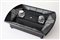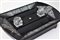 calamaio in legno ebanizzato con inserti in madreperla, bicchieri in cristallo con coperchio in argento, cm 10x37x27