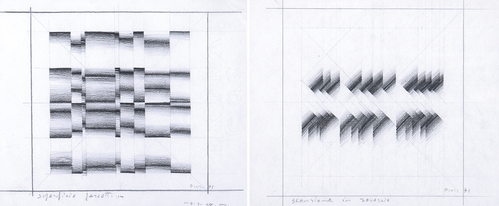 ENNIO FINZI Venezia 1931 Superficie per cotti, 1971 matita su carta cm. 23x28, firma e anno in basso a destra, titolo in basso a sinistra, dichiarazione d'autenticità dell'artista su foto. Scansione in rovescio, 1971 matita su carta cm. 23x28, firma e anno in basso a destra, titolo in basso a sinistra, dichiarazione d'autenticità dell'artista su foto.