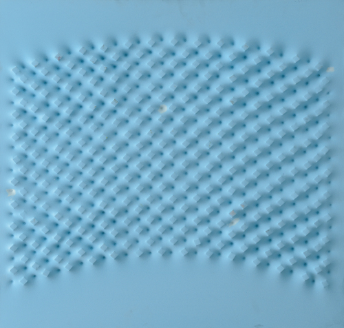 GIUSEPPE AMADIO Todi 19/05/1944 BOBTI tela estroflessa azzurra cm. 78x82, firma e titolo al retro, dichiarazione d'autenticità dell'artista e Archivio Giuseppe Amadio su foto, pubblicato sul catalogo della mostra "Giuseppe Amadio e Gianluca Piaccione, nuove espressioni" tenutasi presso la Saletta d'Arte Viviani (PI) dal 10 luglio al 7 agosto 2011, pagina 16, opera priva di cornice.