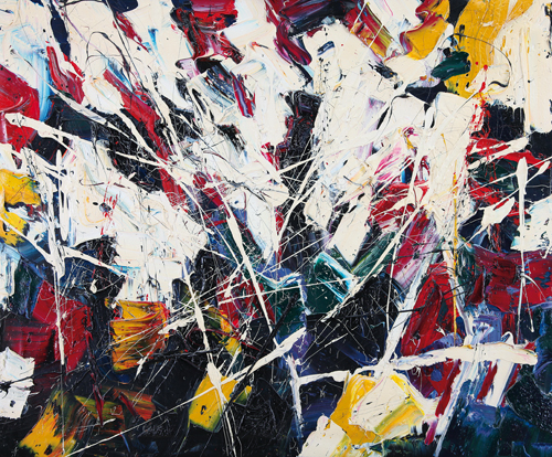 PIERLUIGI DE LUTTI Monfalcone 1959 Armonie di colore olio su tela cm. 100x120, firma, titolo e dedica ad personam al retro, dichiarazione d'autenticità dell'artista su foto.