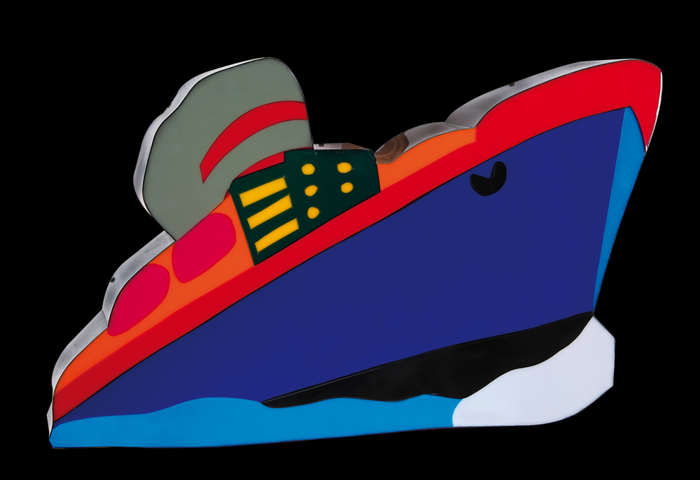 MARCO LODOLA Dorno (Pv) 04/04/1955 Nave, 2001 perspex + neon (luminosa da parete) cm. 45x84x12, firma, titolo, anno e tecnica al retro, dichiarazione d'autenticità dell'artista ed etichetta della Colombo Arte (Bovisio-MI) su foto.