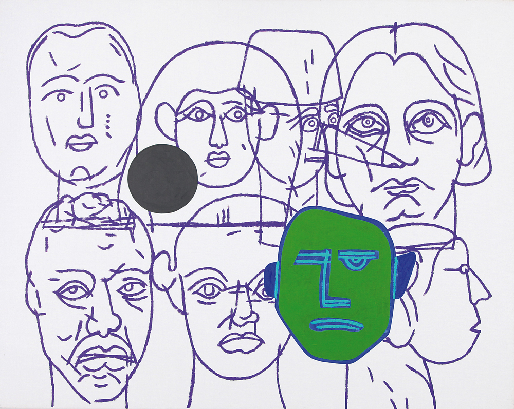 CONCETTO POZZATI Vo' Vecchio (Pd) 01/12/1935  Tutto di testa, 2000 acrilico e smalto su tela cm. 80x100, firma, titolo e anno al retro, dichiarazione d'autenticità dell'artista su foto.