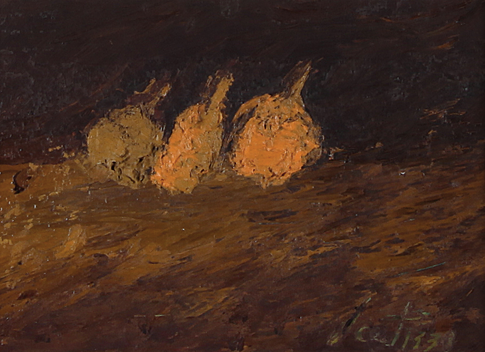 SERGIO SCATIZZI Gragnano (Lu) 20/12/1918 - Firenze 02/12/2009 Natura morta olio su tavola cm. 19x26,5; firma in basso a destra e al retro, dichiarazione d'autenticità dell'artista su foto.