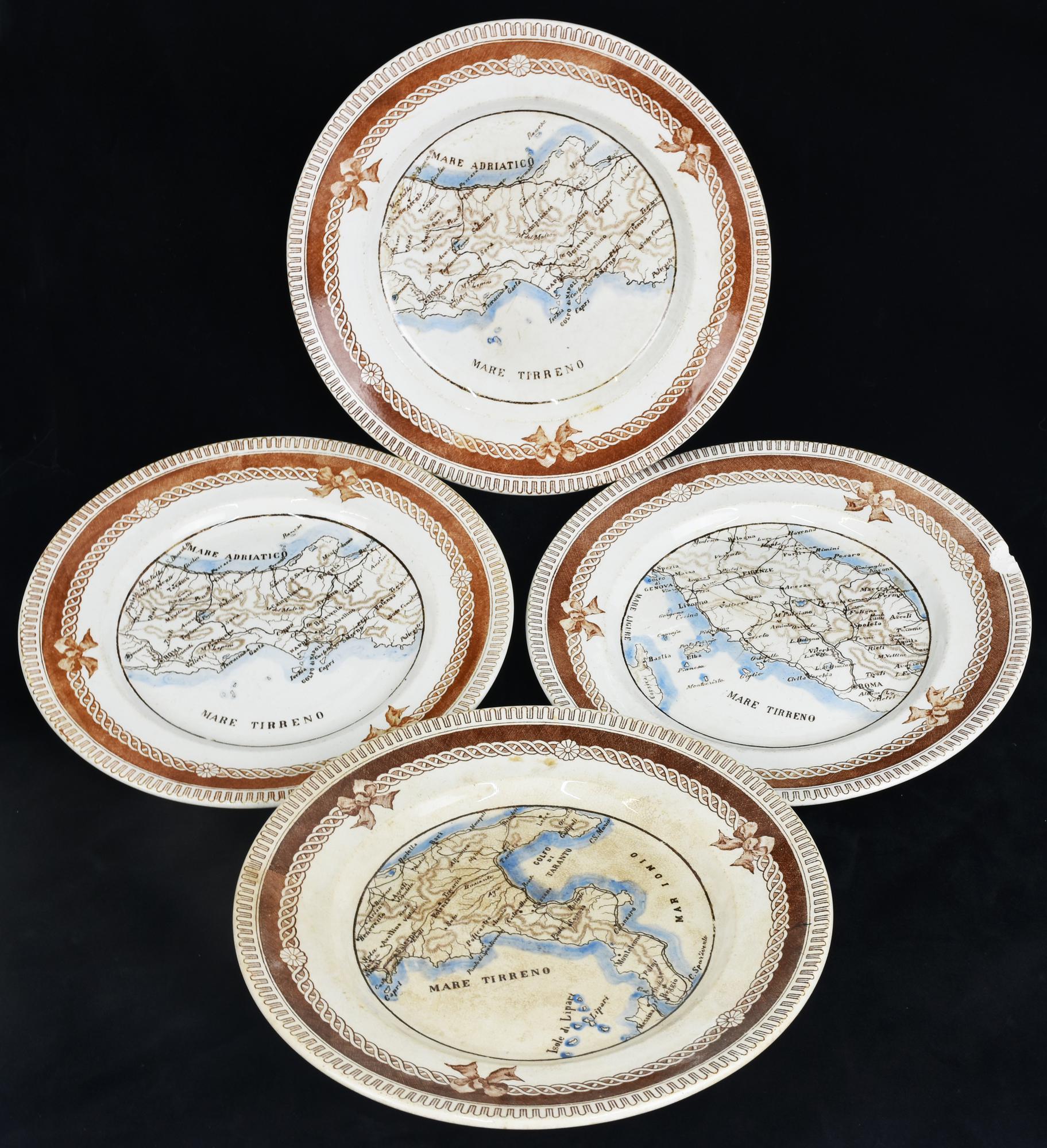Lotto 32 | LOTTO DI PIATTI GEOGRAFICI 4 pezzi, raffiguranti il Centro e il Sud Italia...