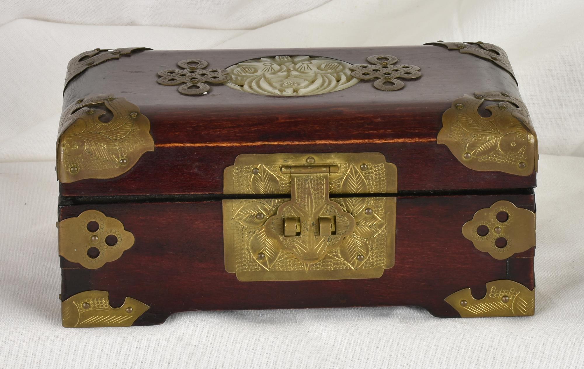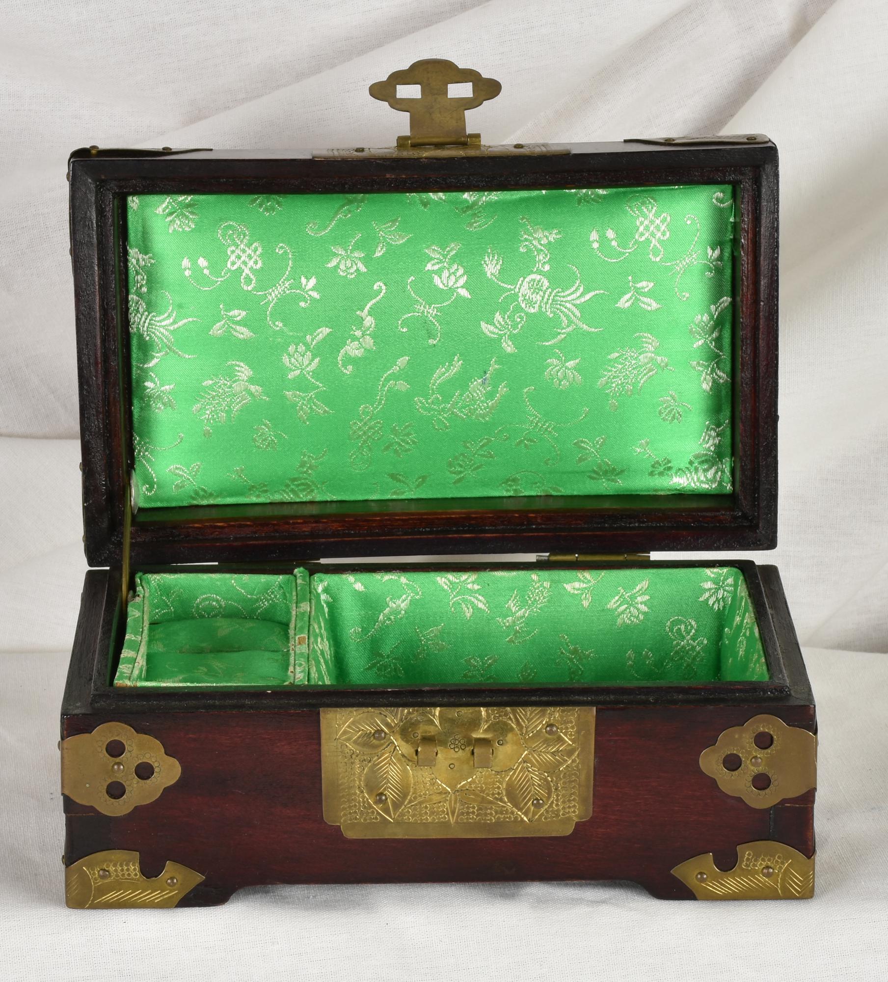 SCATOLA CINESE PORTAGIOIELLI in legno con inserti in ottone, finemente...