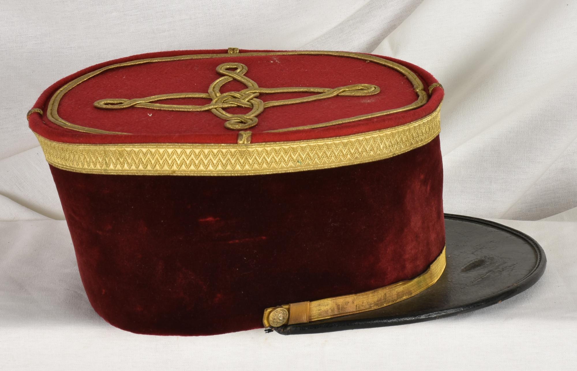 BERRETTO DA UFFICIALE IN VELLUTO con fregi dorati misura 58 ca. Francia, fine...