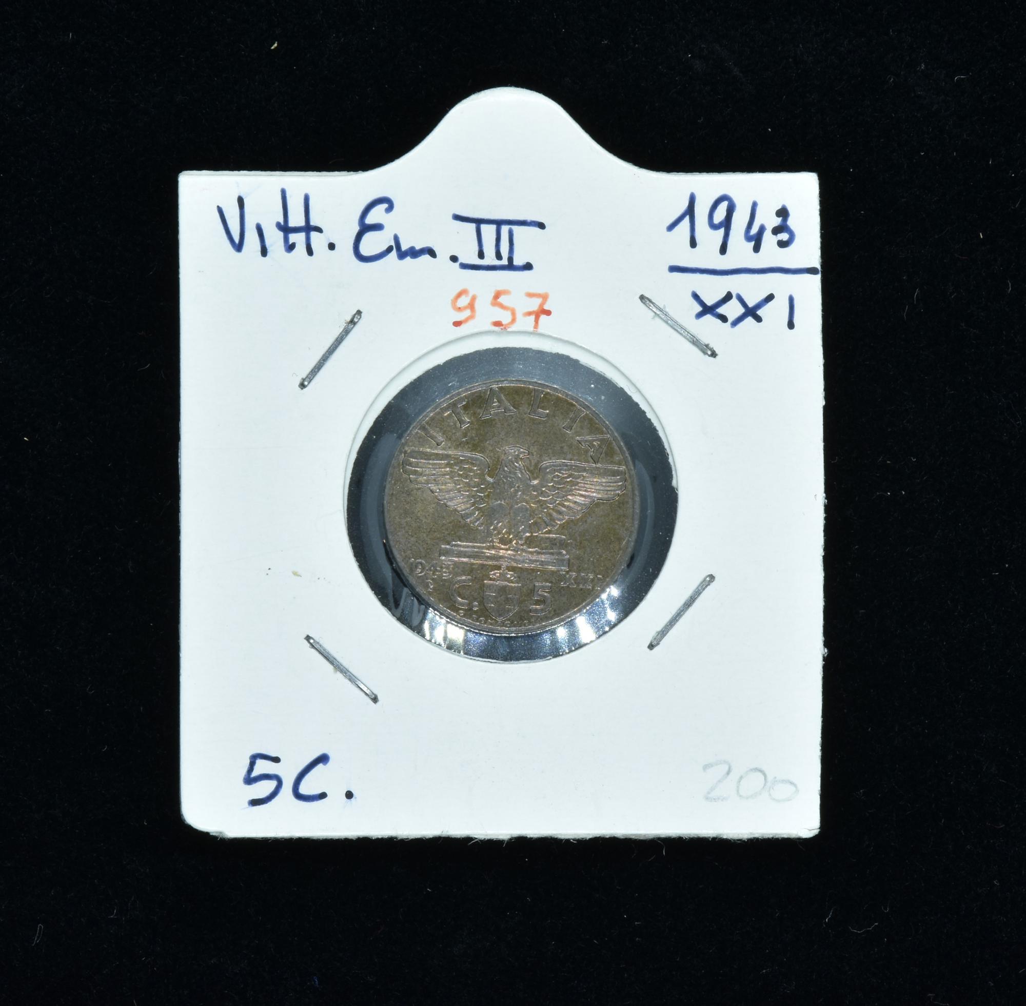 Precedente Lotto 33 Successivo Livebid - Via Tiziano Vecellio 34/D, 10126 Torino MONETE DEL MONDO E ITALIANE. REGNO D’ITALIA, REPUBBLICA, S.M.O.M. E STATO PONTIFICIO Sessione Unica giovedì 13 maggio 2021 ore 21:00 (UTC +01:00) 5 CENTESIMI REGNO D'ITALIA 1943 5 CENTESIMI REGNO D'ITALIA 1943