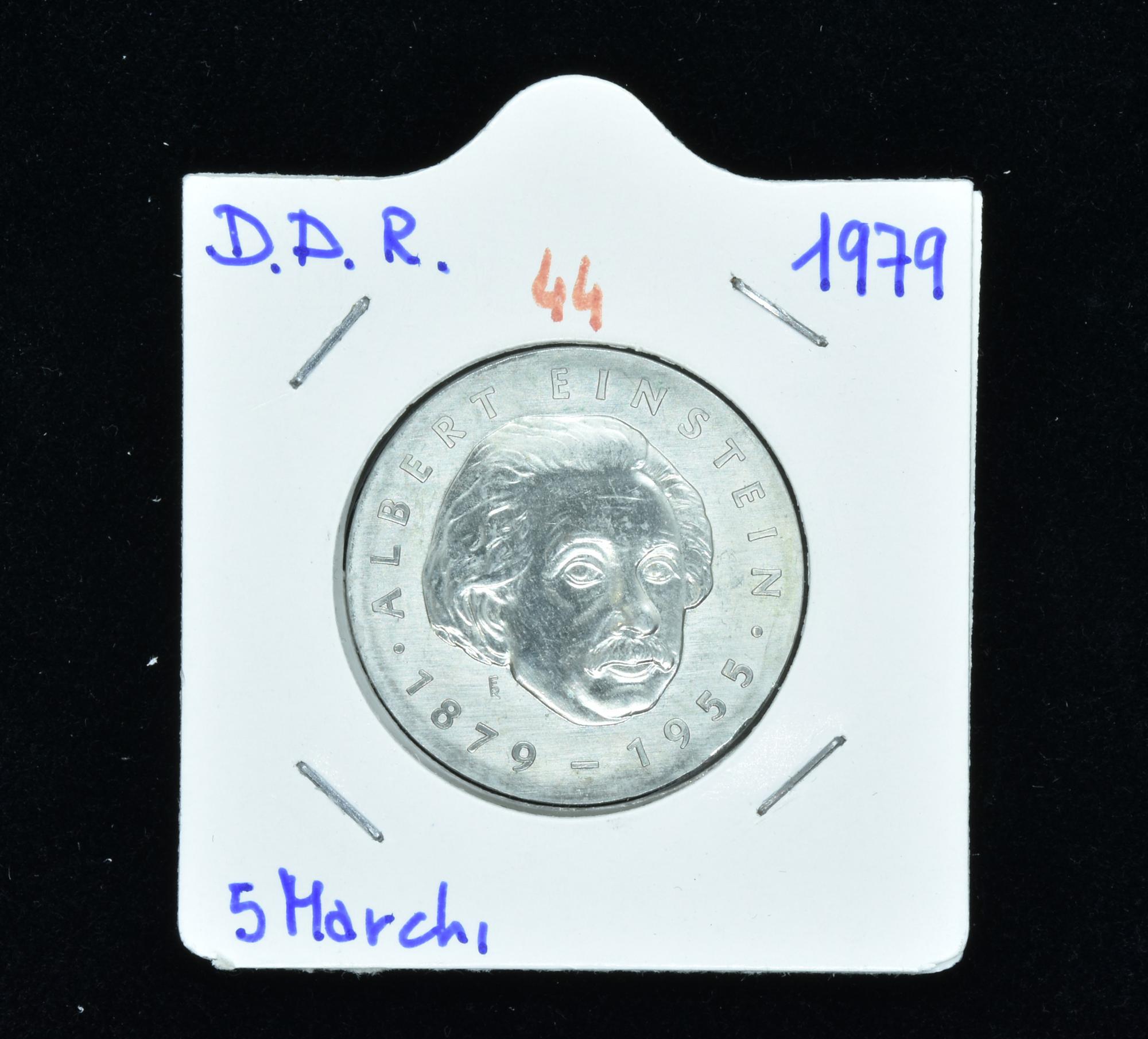 Precedente Lotto 53 Successivo Livebid - Via Tiziano Vecellio 34/D, 10126 Torino MONETE DEL MONDO E ITALIANE. REGNO D’ITALIA, REPUBBLICA, S.M.O.M. E STATO PONTIFICIO Sessione Unica giovedì 13 maggio 2021 ore 21:00 (UTC +01:00) 5 MARCHI DDR 1979 Albert Einstein 5 MARCHI DDR 1979Albert Einstein