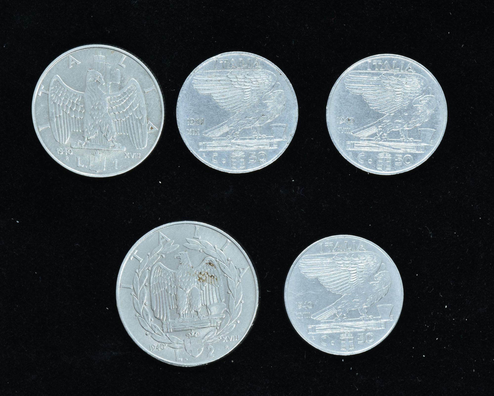 5 MONETE REGNO D'ITALIA composto da: 50 centesimi 1940 50 centesimi 1940 50...