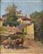 PITTORE NON IDENTIFICATO<BR>"Paesaggio con case e carro con cavalli"