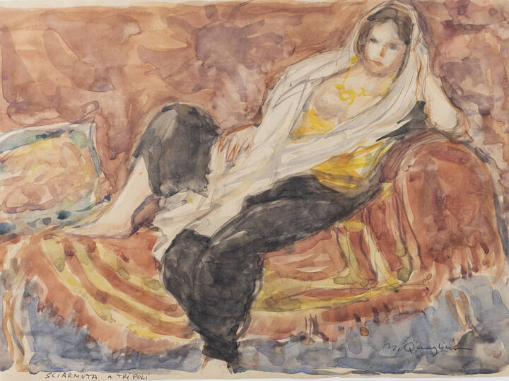 MASSIMO QUAGLINO<BR>Refrancore (AT) 1899 - 1982 Torino<BR>"Sciarmuta a Tripoli"