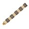 in oro giallo 18K e argento, a cinque motivi rettangolari traforati, decorati con smeraldo taglio rotondo e diamanti taglio rosa, collegati tra loro da catenelle.