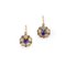 in oro rosso 18K, motivo a fiore con petali in madreperla e paste vitree blu, chiusura a monachella.
