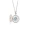 in oro bianco 18K, con pendente tondo in agata bianca che cela orologio con quadrante in madreperla e numeri romani, decorato da diamanti taglio brillante per totale ct 0,50 circa.